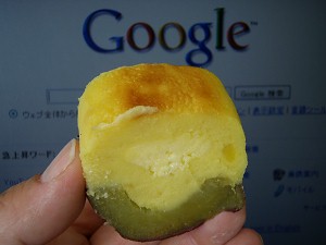 事務所のO氏がお取り寄せした北海道は苫小牧「四季舎」の「北海道スイートポテト」・・・中味をくり抜いたさつまいも(紅あずま)の上に生地とクリームをのせて焼いた、普通に見るのとはちょっと違ったスイートポテトである。