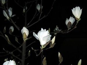 さて、「ひみつ手帳」を片手に帰宅したら、庭のハクモクレンがほぼ開花していた。日曜にはまだ花弁がちょっとだけ顔を覗かせていただけだったのに、昨日、今日の陽気で一気にここまで進んだわけだ。今年は早くなるだろうとは思っていたが、ここまで早くなるとは・・・。