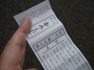 で、その結果?は・・・運勢は「大吉」\(^O^)/ 、健康運は「全く心配はない。この好調を崩さぬよう健康管理を行うこと。」とあった。うーん、うれしいけど微妙な感じ・・・よく「大吉」は、あとは落ちるだけなどと言われるし・・・。