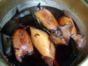一時間半ほどでいよいよ完成(L)、昆布と一緒にお持ち帰り(R)