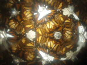 恒例の「チョウ・ツリー」(R)、羽化したばかりの「オオゴマダラ」(L)