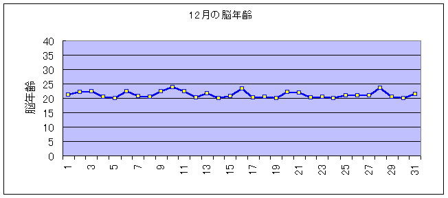 本日の脳年齢:20才11ヶ月(前日比:-0才1ヶ月)