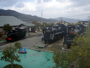 「シルクのまちかや」隣接のSL広場(L)、(R)