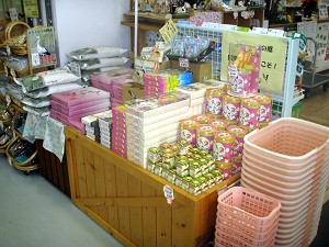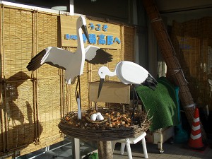 「神鍋高原」といえばコウノトリ(L)、コウノトリ土産コーナー(R)