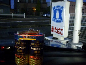 さて、その帰り道、ローソンに寄ると・・・レジのすぐ横の台に「宇宙戦艦ヤマト TVシリーズ 35周年」を記念したヤマト・メカのフィギュアが付いた缶コーヒーが所せまし並んで