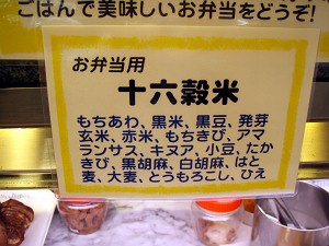 ちなみにその十六穀は何かというと・・・見てのとおりの16種・・・うーん、覚え切れん。おばちゃんはご飯を盛りつけてる間に「覚えた?」って聞いていたけど・・・覚えられる訳がない。