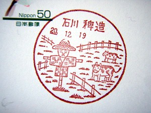 最後の訪問となったのは志賀町(旧富来町)の「稗造局」・・・この局のデザインには来年の干支である牛が2頭・・・意図していなかったが区切りの局として記念となった。