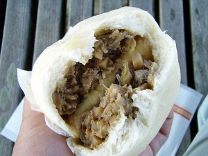 肝心のあんの方はというと、量はたっぷり、それもお肉がたっぷり入っていて、それなりに美味しいのだが、「まこも」の存在感がほとんどない。ま、「たけのこ」と違って歯ごたえがないから仕方がないとは思うが・・・もっと大きい方が良いのではないかと・・・。