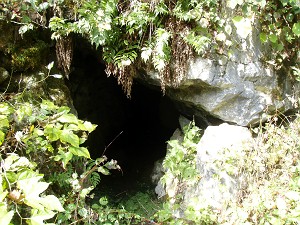 観光洞窟「白馬洞」は閉鎖中(L)、旧入り口(R)