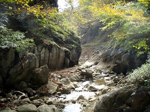瀬戸大橋のモデル箱ヶ瀬橋も架橋40年(L)、ポイント3「白馬洞」(R)