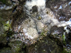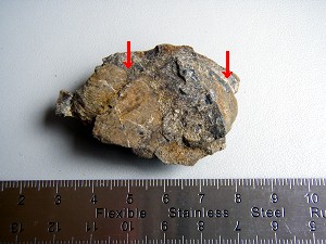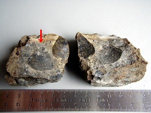 非収穫物「ハチノスサンゴの化石」(L)、同じ岩にもう一つ(R)