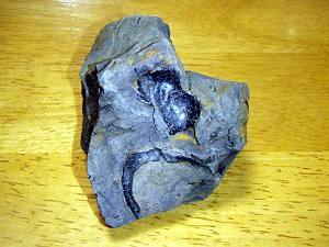 何かというと・・・化石を掘るときに使う(岩石)ハンマーで、片側が「チゼル=chisel=のみ」になっているハンマーだ。鉱物用とか堅い地層用にはピック(pick=つるはし)ハンマーというのもある。