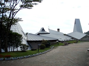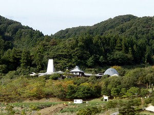 宴の後は「縄文真脇の湯」へ(L)、その遠景(R)