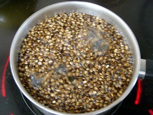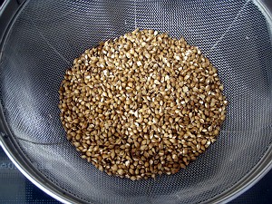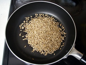 で、ここ数日は棒茶を冷やして飲んでいるのだが、週末ということで、わけてもらった六条大麦を使って、自家製の麦茶を作ってみることにした。