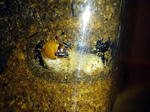 で、気になる蛹化第1号は♂か♀か・・・非常に気になるところだが、ケースが半透明で、しかもところどころ曇っているところに、蛹が瀬を向けていたりするので、イマイチよくわからないが、なんとなく♀っぽい感じ・・・仮に♂だとしても、あまりアゴが大きくはなく中歯といったところかな?