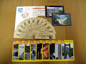 あと、今後に不幸?をもたらすブツが・・・「星のふるさとふじはし」で岐阜の観光コースを紹介するカードを発見してしまったのだ。紙質はイマイチなんだけど、写真がなかなかおもしろいのと全39枚のシリーズというのが微妙に収集オヤジの心をつついてしまったのである。すべてを集めるには東濃・中濃・飛騨まで足を伸ばさないと行けないので、実に困った話なのだが・・・いや、本当に困った。