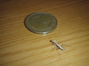 思いつつ、すっかり忘れてしまっていたのだが・・・朝、用があって物置を覗くと二つあるうちの一つが孵化して、飼育ケースの中は再び小さなチョウセンカマキリでいっぱいになっていた \(^O^)/