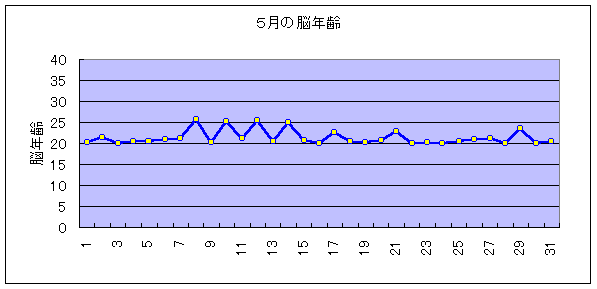 本日の脳年齢:20才5ヶ月(前日比:+0才5ヶ月)
