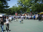 どちらに並ぶかが悩ましいところだが、先生も見たいし、試合もゆっくり見たいので、某先生マニアさんと役割分担し入場行列に並んだが、予想通り、日なたは暑い・・・まぁ、雨よりは遙かにましだが・・・。結局、開場時間は予定より10分早まり、ステージが始まる前に入場することになったが、メタボに鞭打ち、走った甲斐あって、なんとか人工芝の前から2列目?に座席?を確保できた。