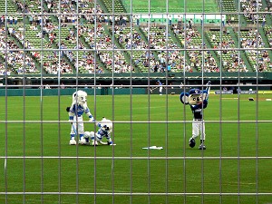 さて、試合の方はというと、先生の奮闘と反比例するように中田&川井が大炎上し、昨日と違ってライオンズファンのみが大喜びする大味な状況になってしまった。まぁ、利害関係者ではないから、あっさりとしたもんで(悪)・・・で、帰りのことを考えて、駐車場のおじさんのアドバイスに従い、7回表で引き上げることにした。ドアラファンは先生の出番が終わればそれでいいのだから(悪)。