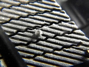 写真で見るとよくわかる。遠目?で見てもわかるが、W90お得意の1cmマクロで撮るとさらにはっきり、表面は思いっきりすり減ってるし、サイプ