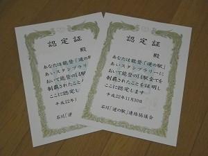 話はすっかりかわって、今日、「のと あいスタンプラリー」の「全駅制覇認定証」が届いた (^o^)