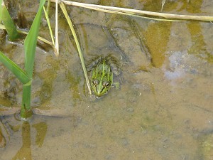 最初の立ち寄り地点の水田(ただし植えるのは稲ではない・・・)には、トノサマガエルがいっぱい!黄金色に輝いている個体も・・・。一ヵ所でこんなにたくさんトノサ