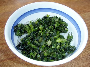 で、感想は・・・中島菜特有の苦み・辛みはほとんど感じなくてかなり残念(´・ω・`) 。もっとも、特徴が出てたら出てたで、万人うけはしないだろうから、仕方がないことなのかも。味付けもちょっと濃い感じだし・・・。