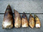 で、今日もご実家にはたけのこ山があるMさんから夕掘りのものをいただいた。30cmくらいの中ぐらい1本と、10~20cmくらいの小ぶり4本の合計5本である。