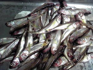 夕方、某所から、今日の昼にとれたばかりの(ちょっと小ぶりな)ハタハタのお裾分け・・・といっても半端な量ではなく・・・なんと200匹ほど(汗)・・・(もっとも、本体はその3倍以上・・・)。