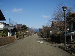 新治村宿場通り(L)、「たくみの里」の福寿草(R)