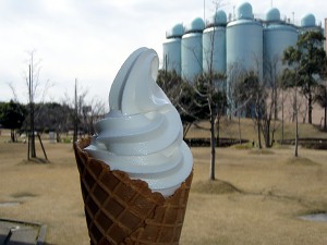 そうこうしているうちに、11時になったので「 ビール酵母入りソフトクリーム(300円)」を発注!(当たり前だけど)早速、食べてみる。