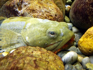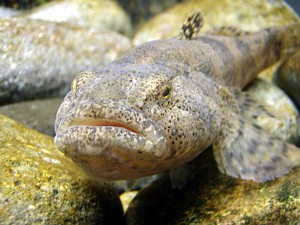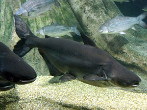メコン川淡水魚博士の部屋の番人?(L)、メコンオオナマズ(R)