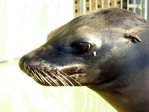 毛フグ(L)、カリフォルニアアシカ「まりん」(R)