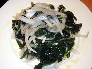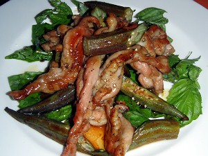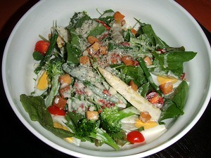 “金時草”の???(L)、“地元産野菜”を使ったシーザーサラダ(R)